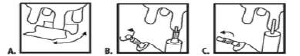 (A). Evitar la contaminación de la boquilla de lo jeringa. Retirar la parte superior de lo tapa y suavemente insertar alrededor de 5 mm (B) o remover toda la tapa e insertar la longitud total de la boquilla (C) en el canal del pezón. Administrar todo el contenido de la jeringa al interior del cuarto. Dispersar el producto masajeando suavemente el pezón y la ubre de la vaca afectada.